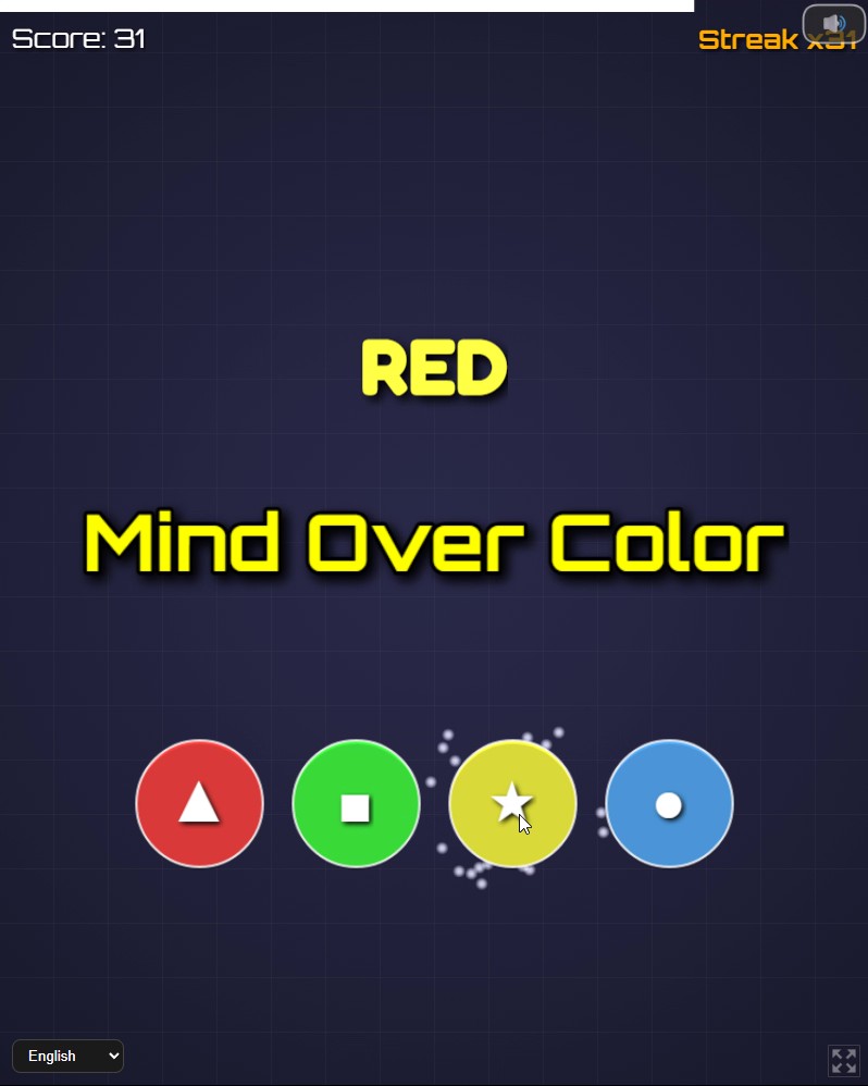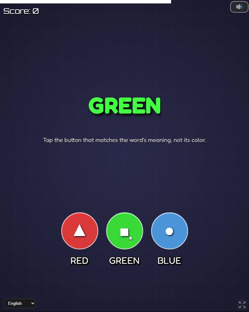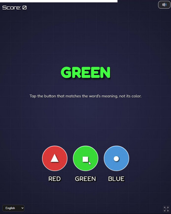 A word appears on screen (for example: RED), but it may be displayed in a different color. Your task is simple: